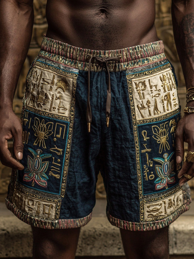 Ancient Egyptian Inspired Patchwork Comfy Linen Shorts