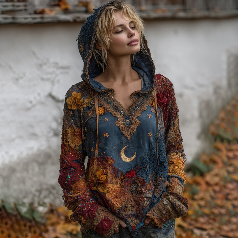 Autumn Long-sleeved Embroidered Contrasting Color Hoodie