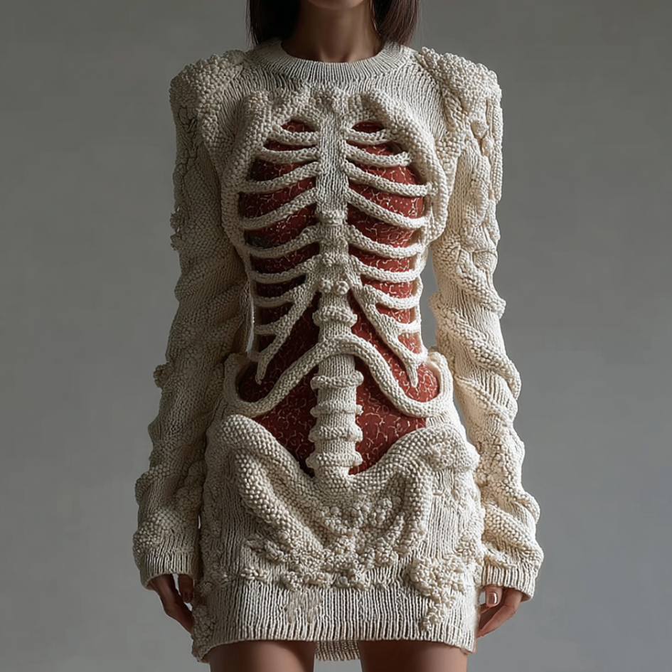 Halloween Female Snake Wrapping Anatomy Skeleton Design Knit Sweater Dress
