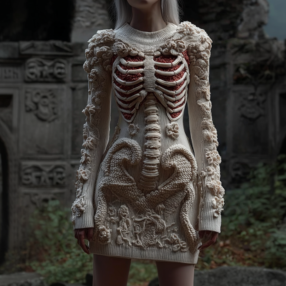 Halloween Female Snake Wrapping Anatomy Skeleton Design Knit Sweater Dress