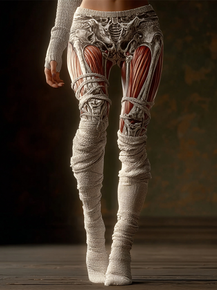 Halloween Muscle Skeleton Bandage Art Women's Knit Leggings