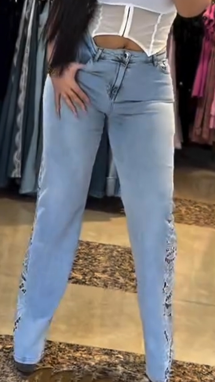 Ladies' Patchwork Printed Hollow Casual Jeans