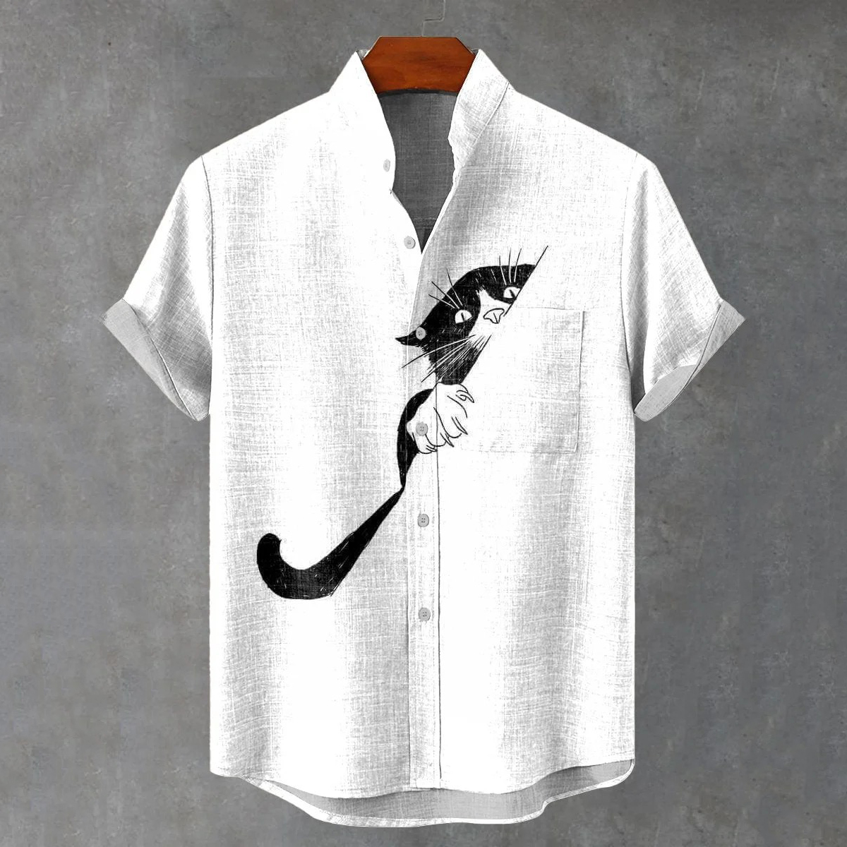 Men's Black Cat Hiding Print Short Sleeve Shirt