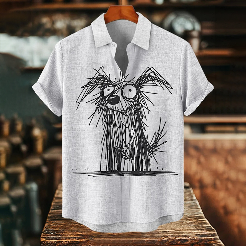 Men's Cartoon Abstract Sketch Dog Art Print Casual Shirt