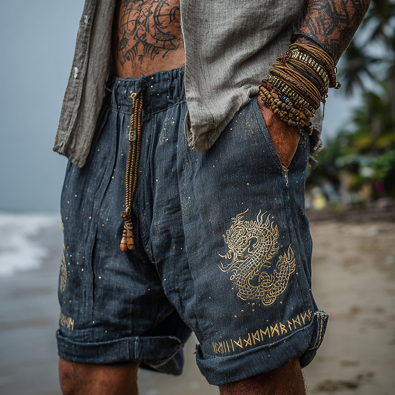 Men's Viking Retro Celtic Dragon Golden Knot Casual Shorts