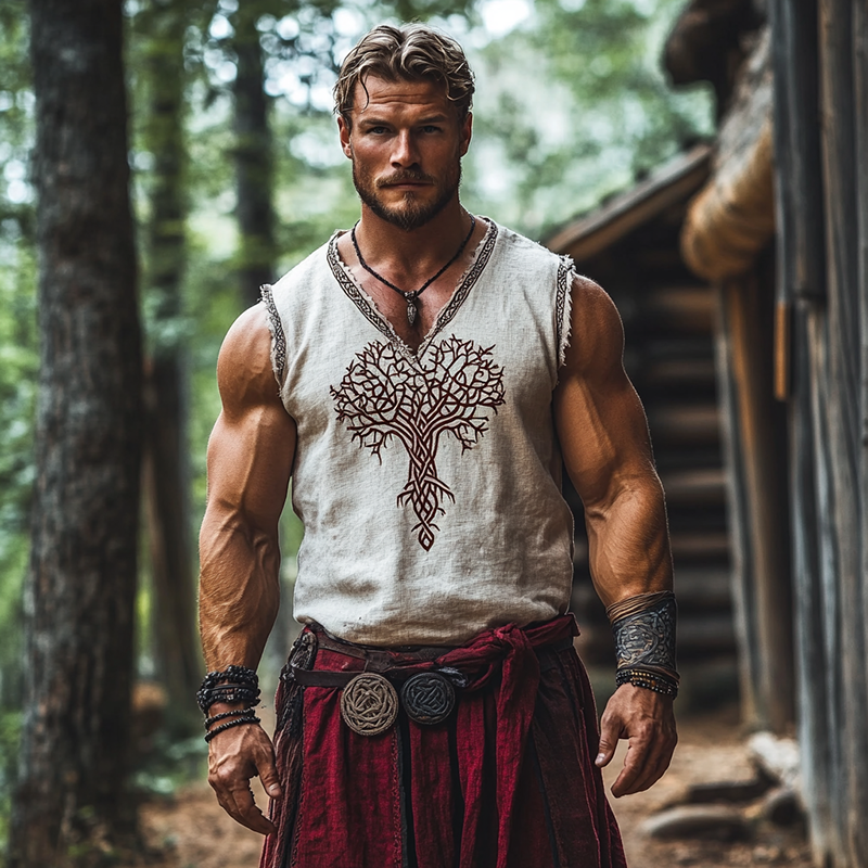 Men's Vintage Viking Tree Of Life Celtic Knot Embroidered Art Vest