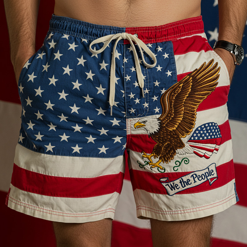 Men's Vintage We The People Bald Eagle Embroidered Linen Shorts
