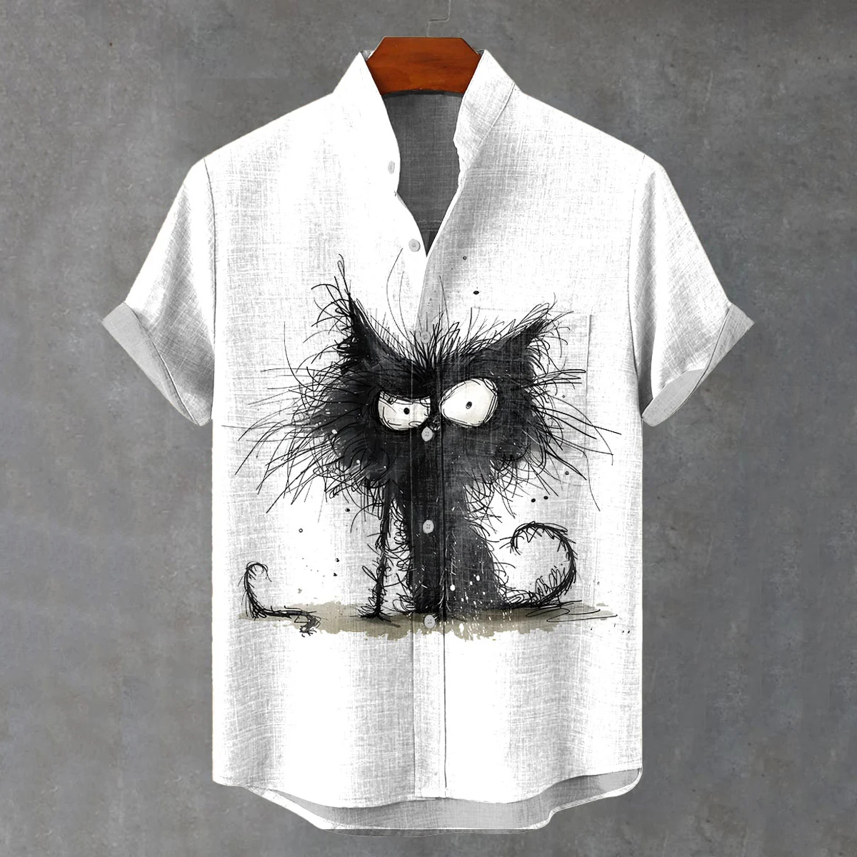 Messy Black Cat Vintage Print Casual Cotton Shirt