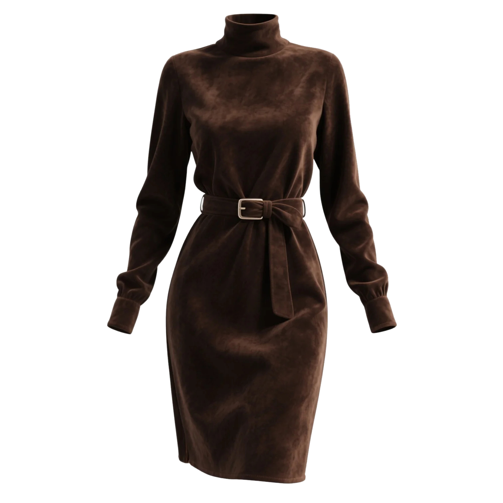Crafted from soft suede with a refined high-neck collar, this Retro Western Style Midi Dress offers the perfect balance of sophistication and comfort. The self-tie belt cinches the waist, creating a flattering silhouette, while the long sleeves and mid-neck design make it ideal for cooler seasons. Perfect for office days, casual outings, or dinner dates, this piece transitions seamlessly from day to night.