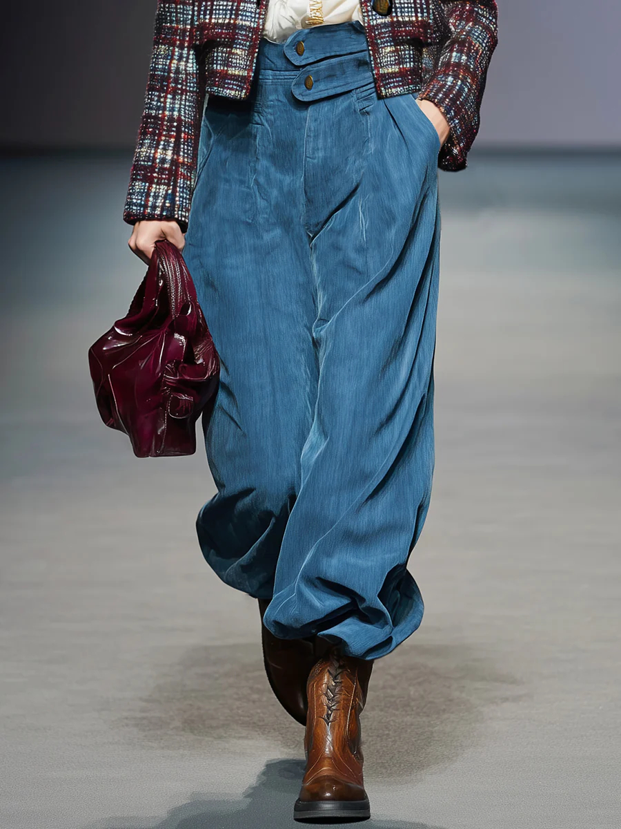 💙 Retro Fashion Button-Decorated Blue Wide-Leg Pants