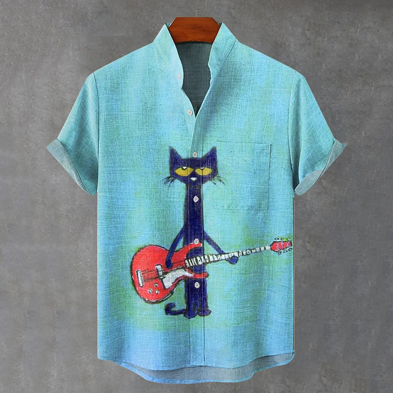 Retro Guitar Cat Art Print Casual Short Sleeve T-shirt