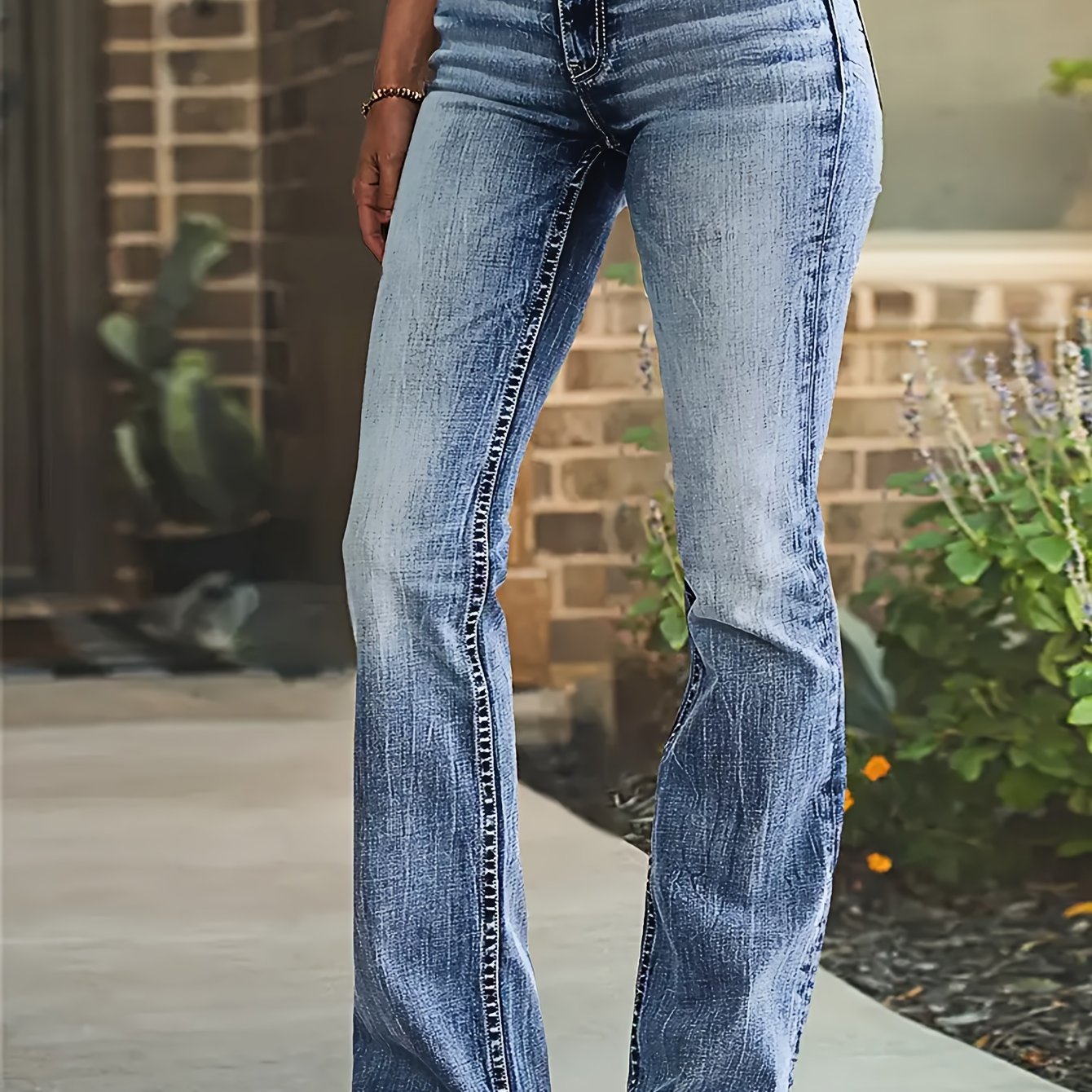 Skinny Fit Plain Washed Flare Leg Jeans, Elegant Style Zipper Button Closure Denim Pants, Women's Denim Jeans & Clothing