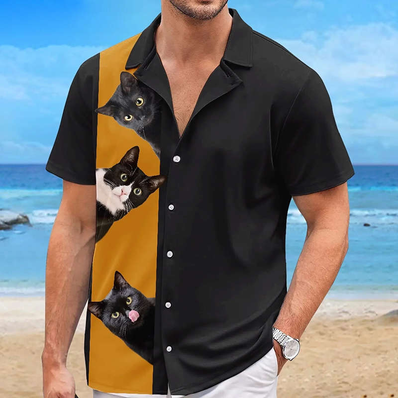 Vintage Black Cat Hawaiian Art Casual Short Sleeve Shirts