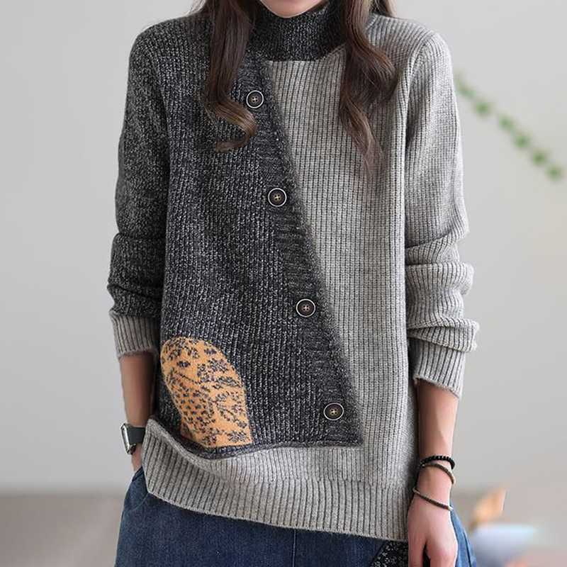 Vintage Color Block Button Down Comfy Sweater