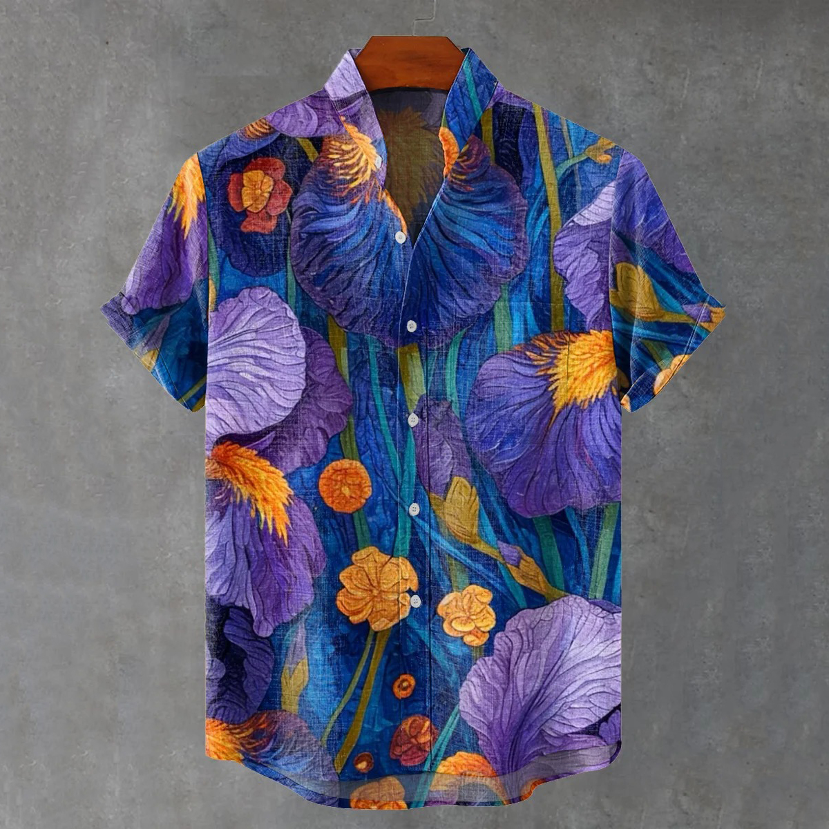 Vintage Purple Floral Art Print Casual Cotton Shirt