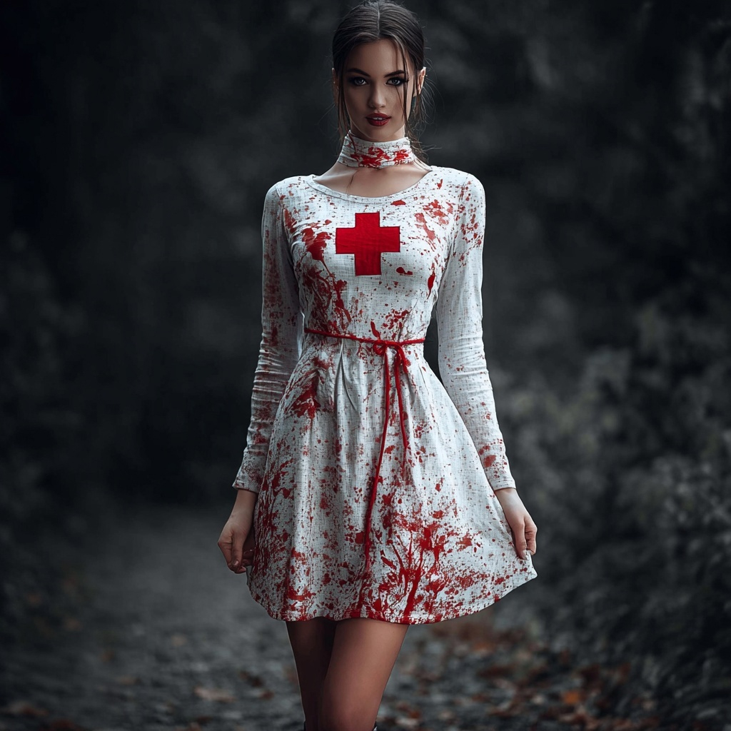 Vintage Spooky Bloody Cross Halloween Mini Dress