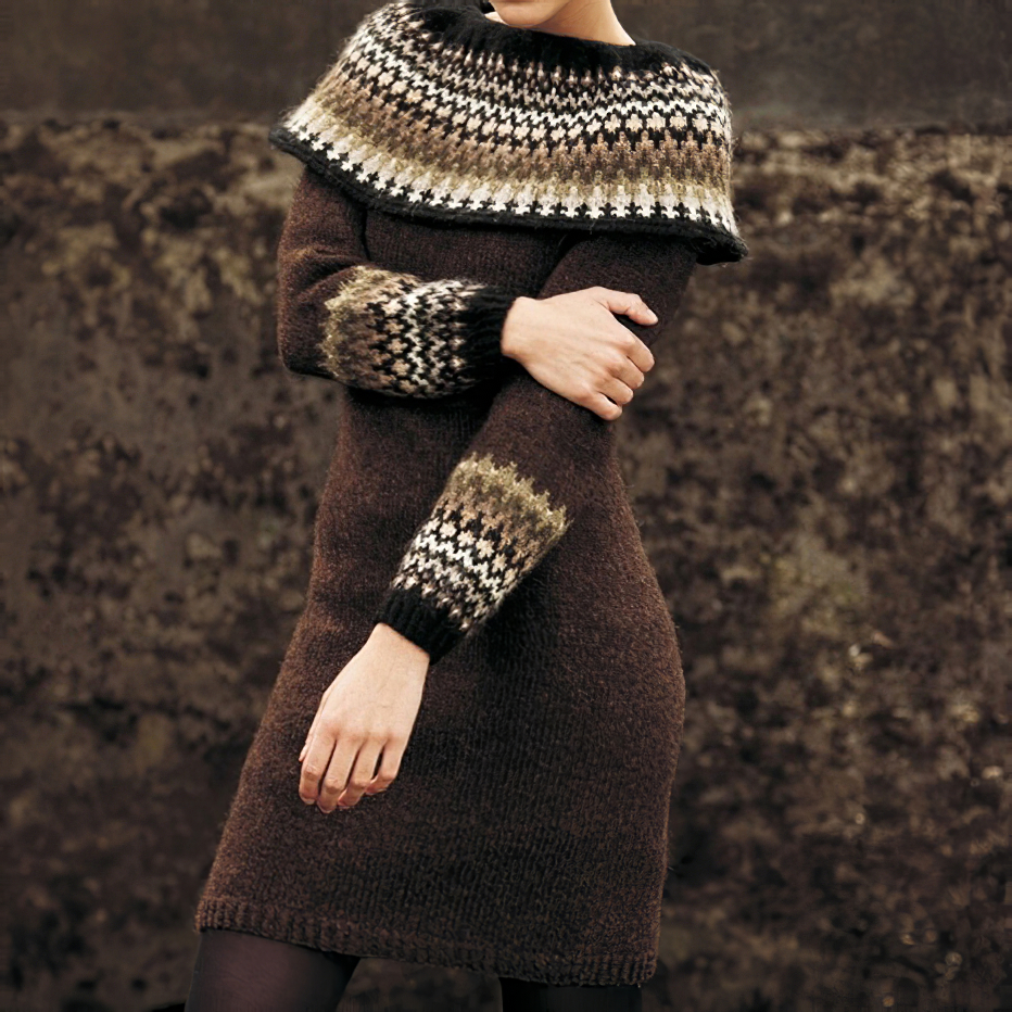 💖 A vintage-inspired jacquard wool dress that blends warmth, elegance, and timeless style.