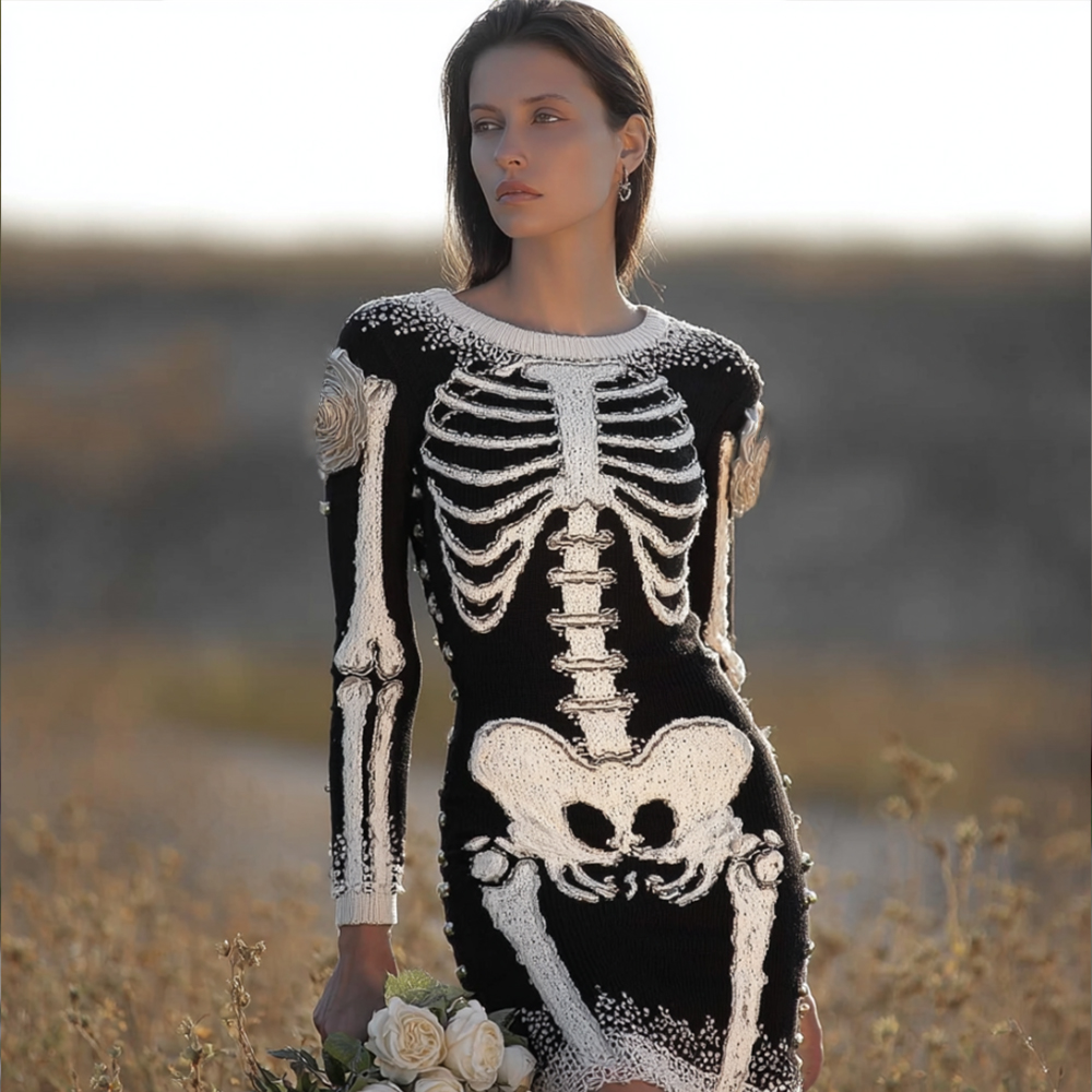 Women Halloween Human Anatomy Art Knitted Vintage Round Neck Skirt