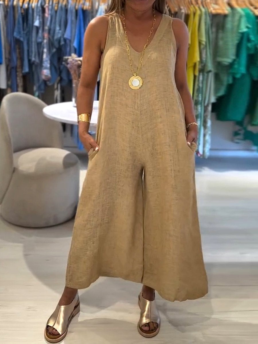 Women's Casual 100% Cotton Wide Leg Jumpsuit