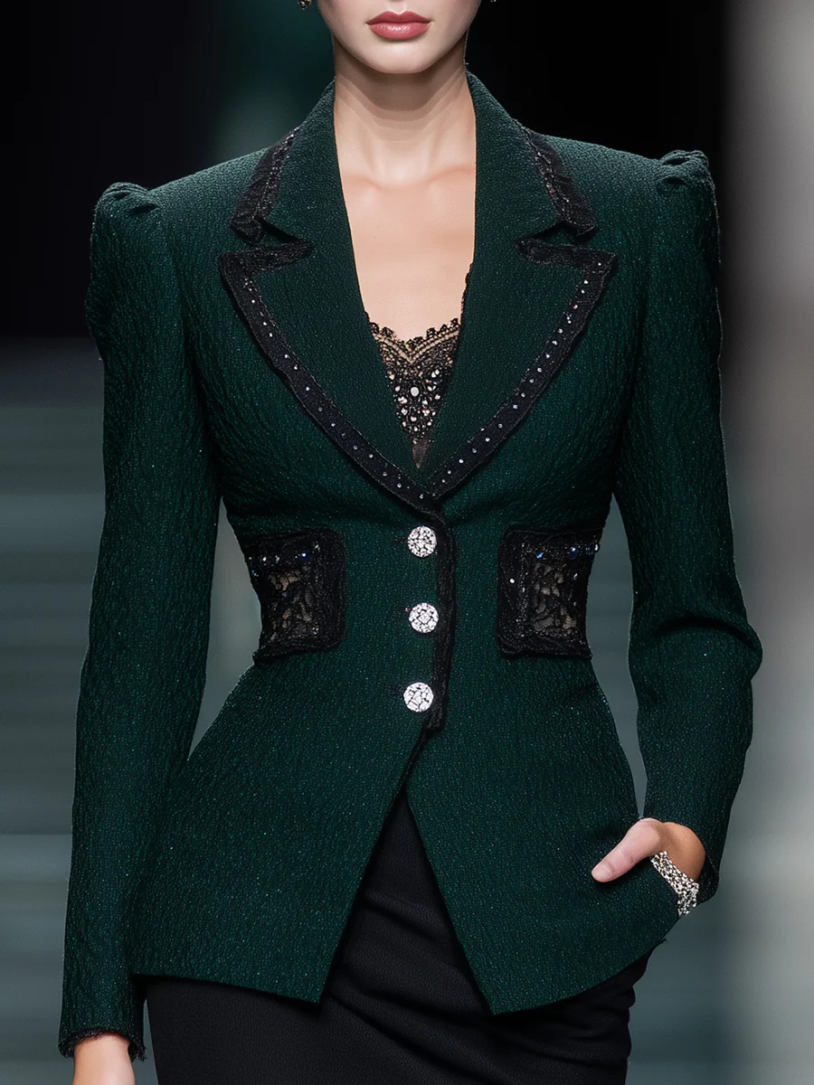 Women's Elegant Green Blazer With Lace Detailing