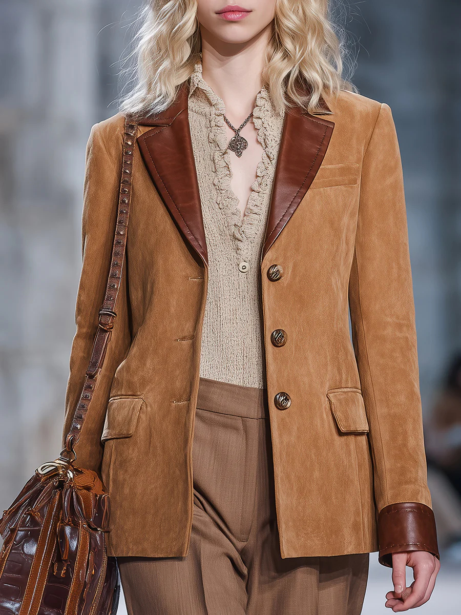 Women's Elegant Western Brown Suede Blazer