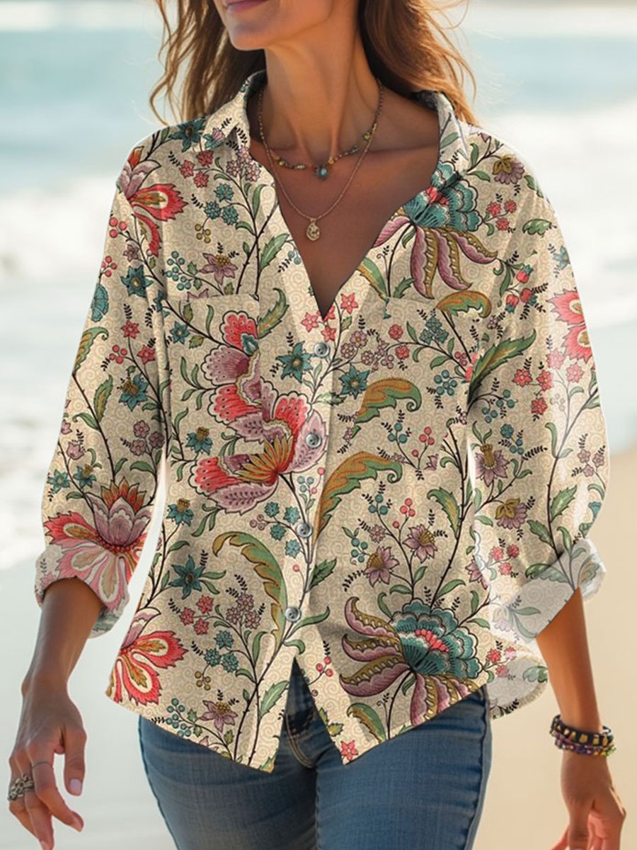 Women's Floral Print Casual Long Sleeve Comfortable Cotton Shirt