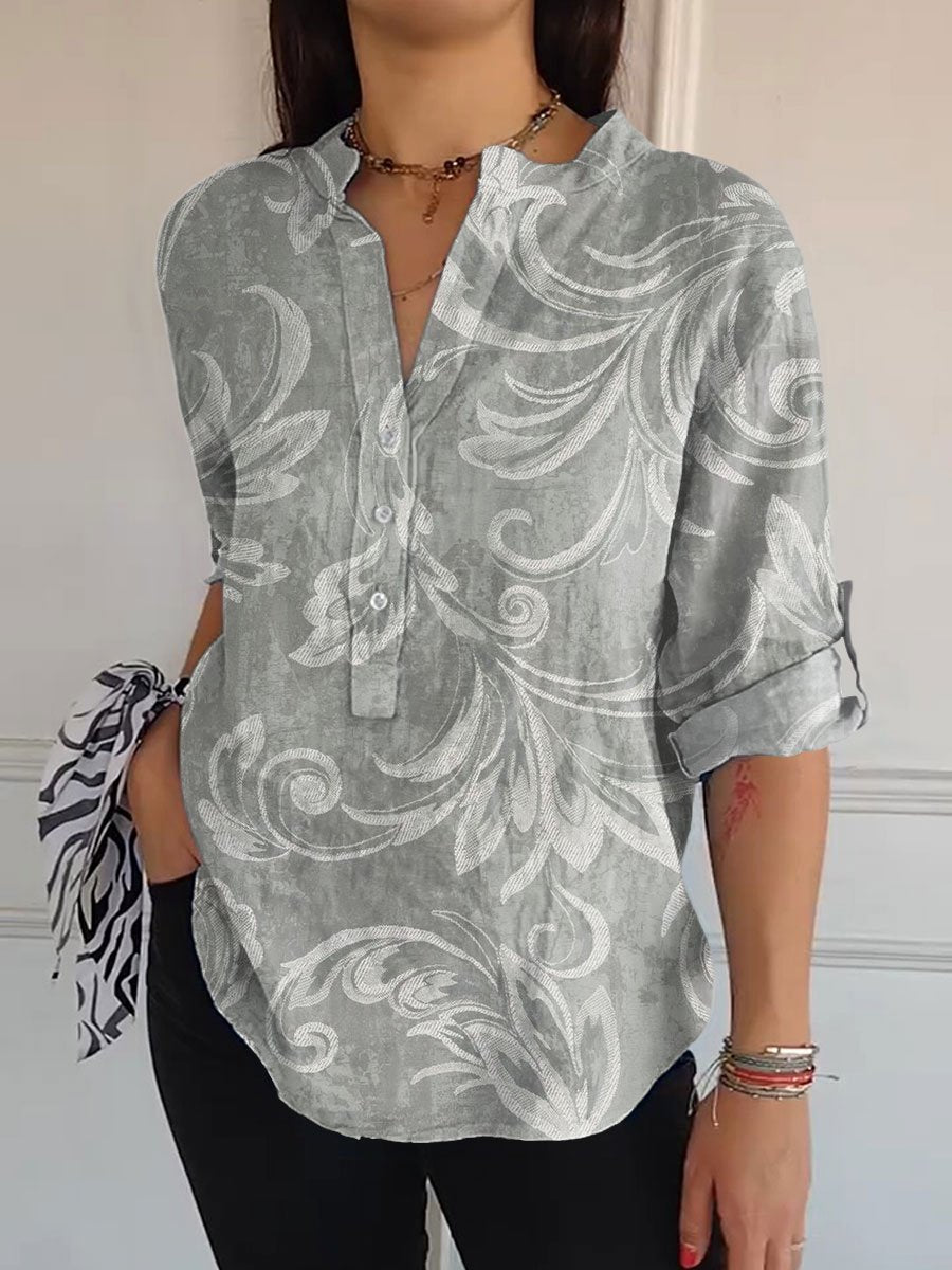 Women's Flowers Art Print Casual Long Sleeve Comfortable Cotton Shirt