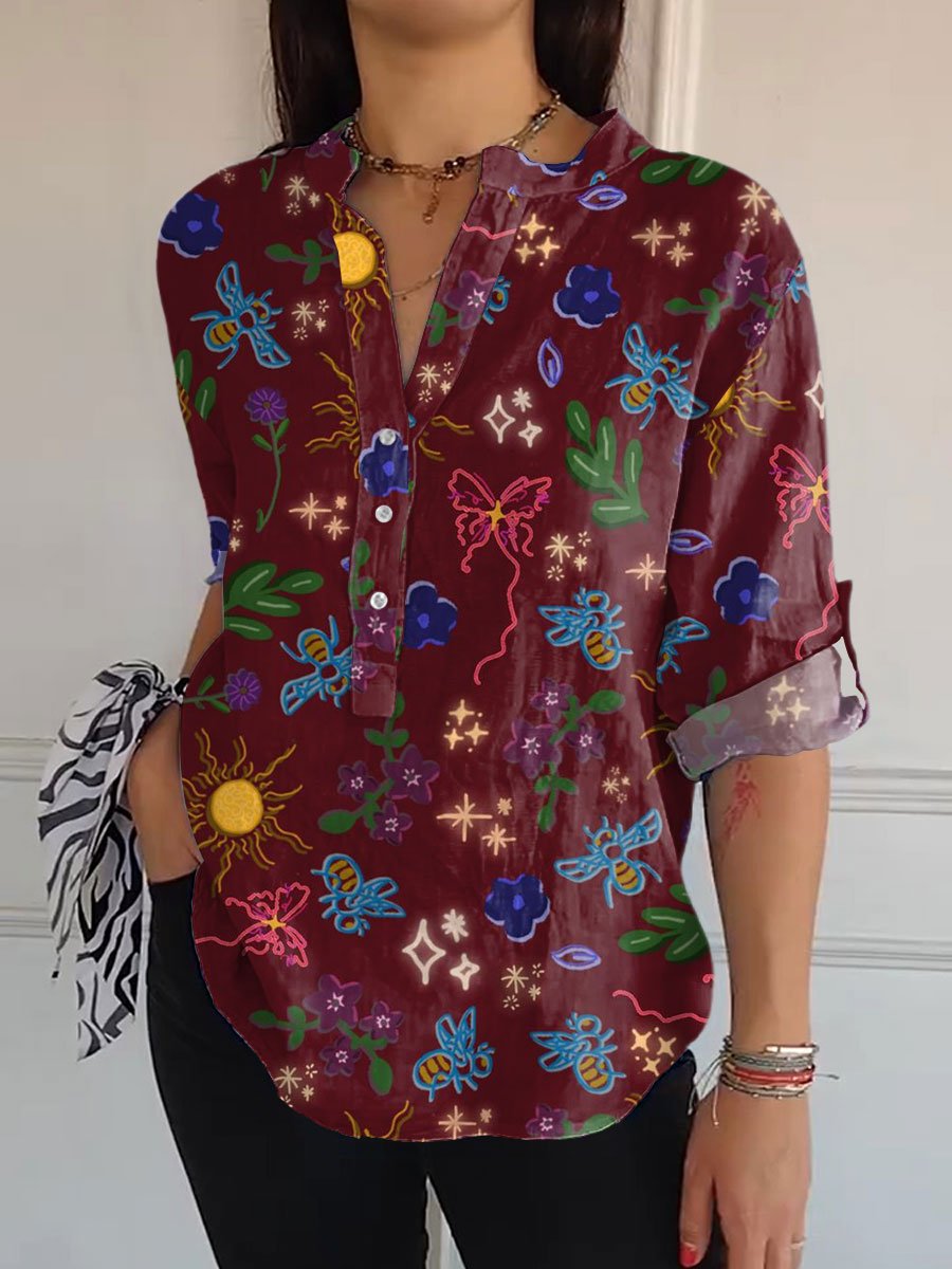 Women's Flowers Print Casual Long Sleeve Comfortable Cotton Shirt
