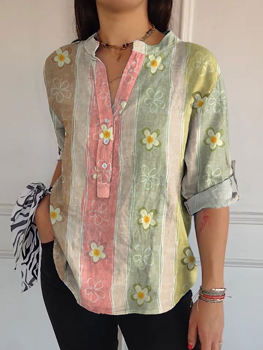Women's Flowers Print Casual Long Sleeve Comfortable Cotton Shirt