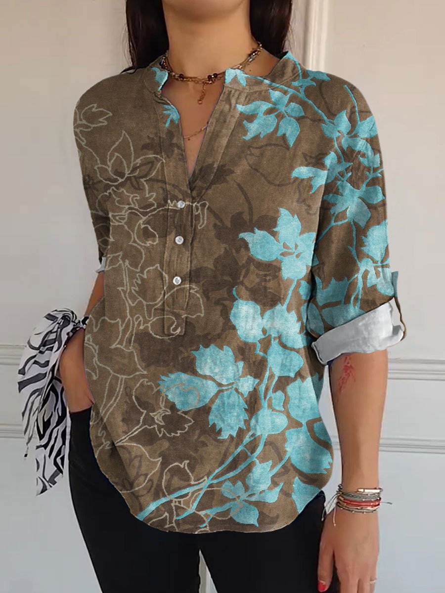 Women's Retro Floral Colorful Print Casual Long Sleeve Comfortable Cotton Shirt
