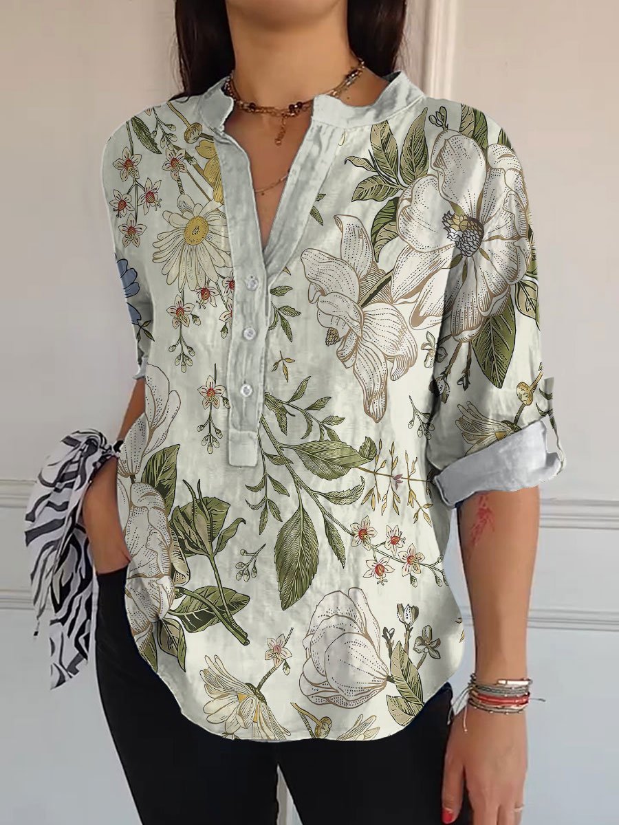 Women's Retro Floral Colorful Print Casual Long Sleeve Comfortable Cotton Shirt