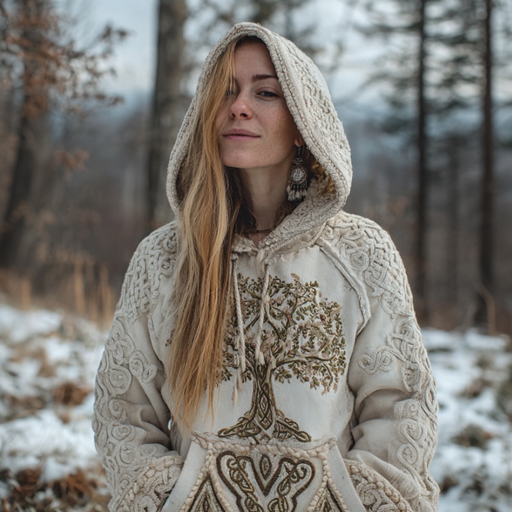 Women's Viking Tree Of Life Art Knitted Hoodie Sweater