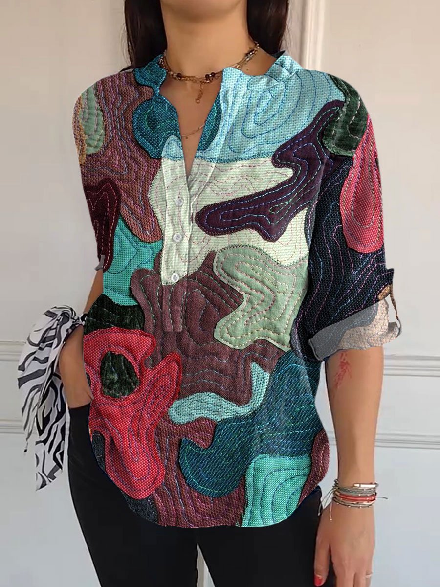 Women's Vintage Art Print Casual Long Sleeve Comfortable Cotton Shirt