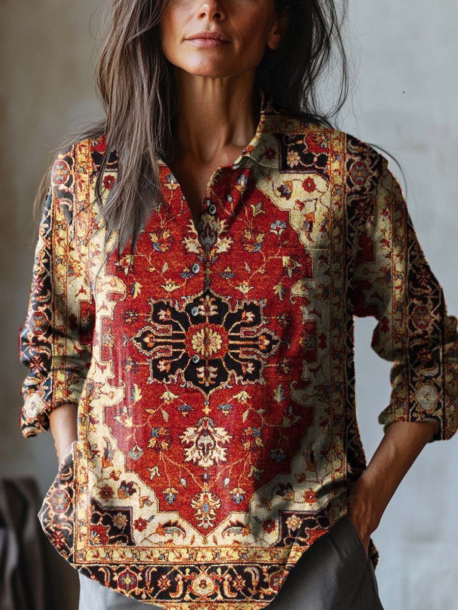 Women's Vintage Lovely Floral Art Print Casual Cotton And Linen Shirt