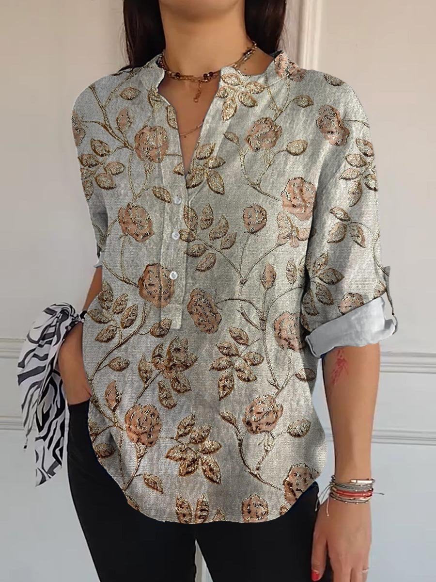 Women's Vintage Lovely Floral Art Print Casual Long Sleeve Comfortable Cotton Shirt