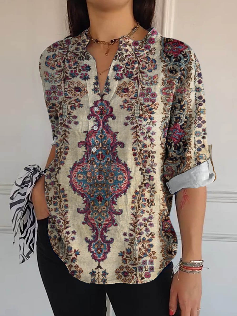 Women's Vintage Lovely Floral Art Print Casual Long Sleeve Comfortable Cotton Shirt