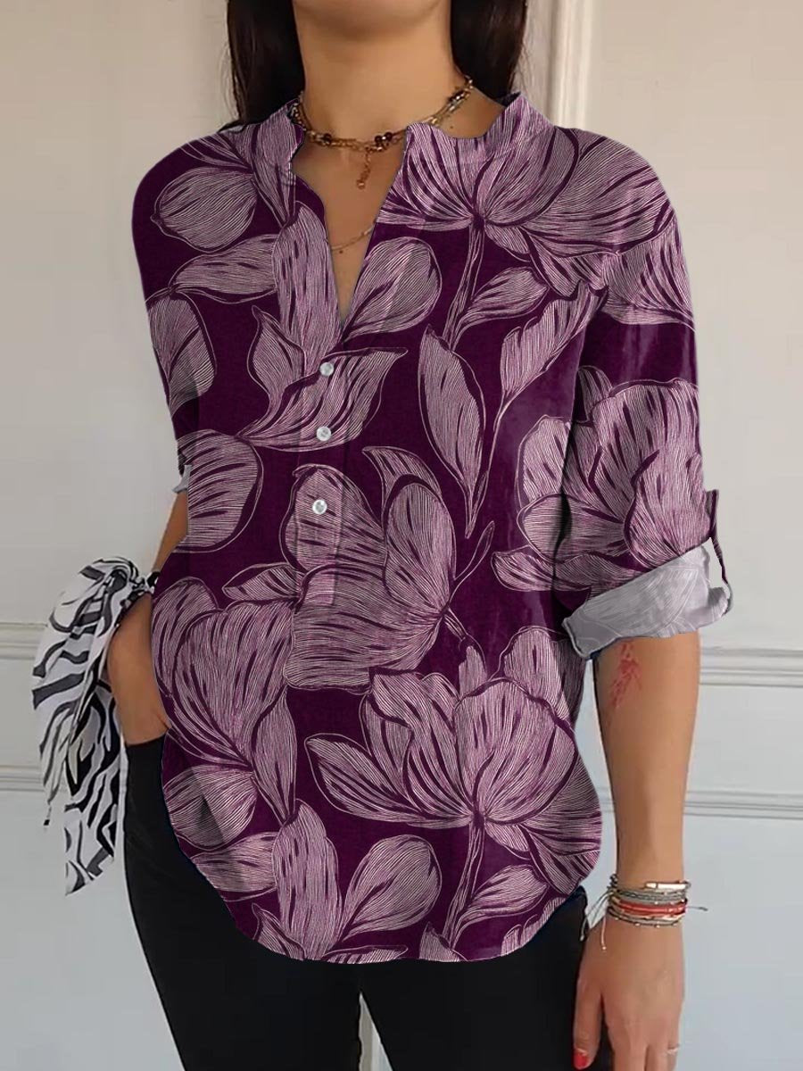 Women's Vintage Lovely Floral Art Print Casual Long Sleeve Comfortable Cotton Shirt