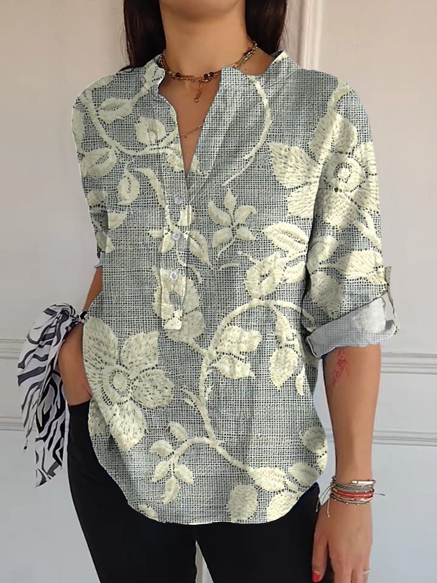 Women's Vintage Lovely Floral Art Print Casual Long Sleeve Comfortable Cotton Shirt