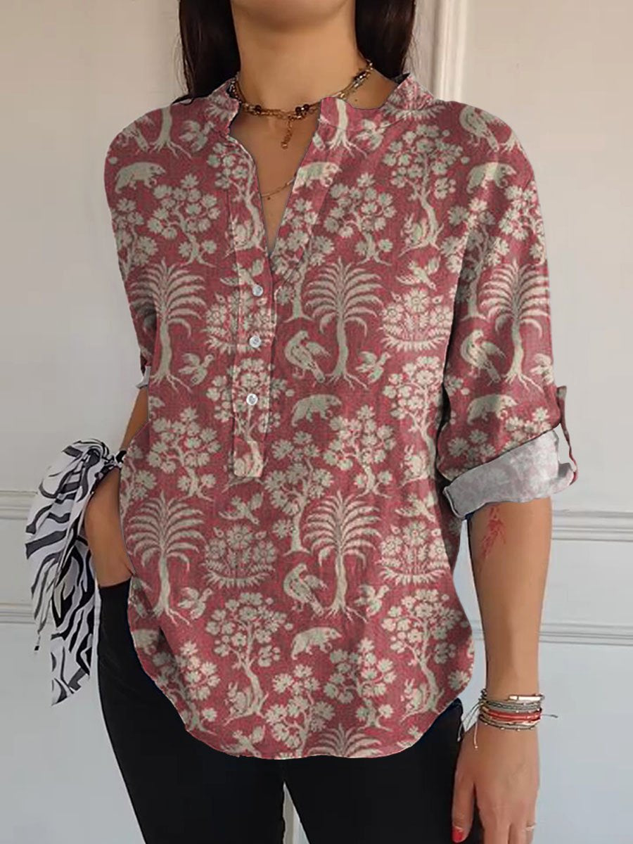 Women's Vintage Lovely Floral Art Print Casual Long Sleeve Comfortable Cotton Shirt