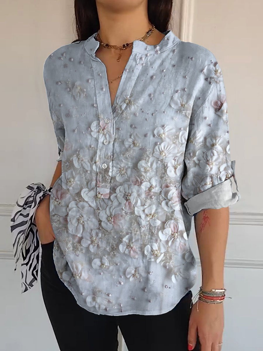 Women's Vintage Lovely Floral Art Print Casual Long Sleeve Comfortable Cotton Shirt