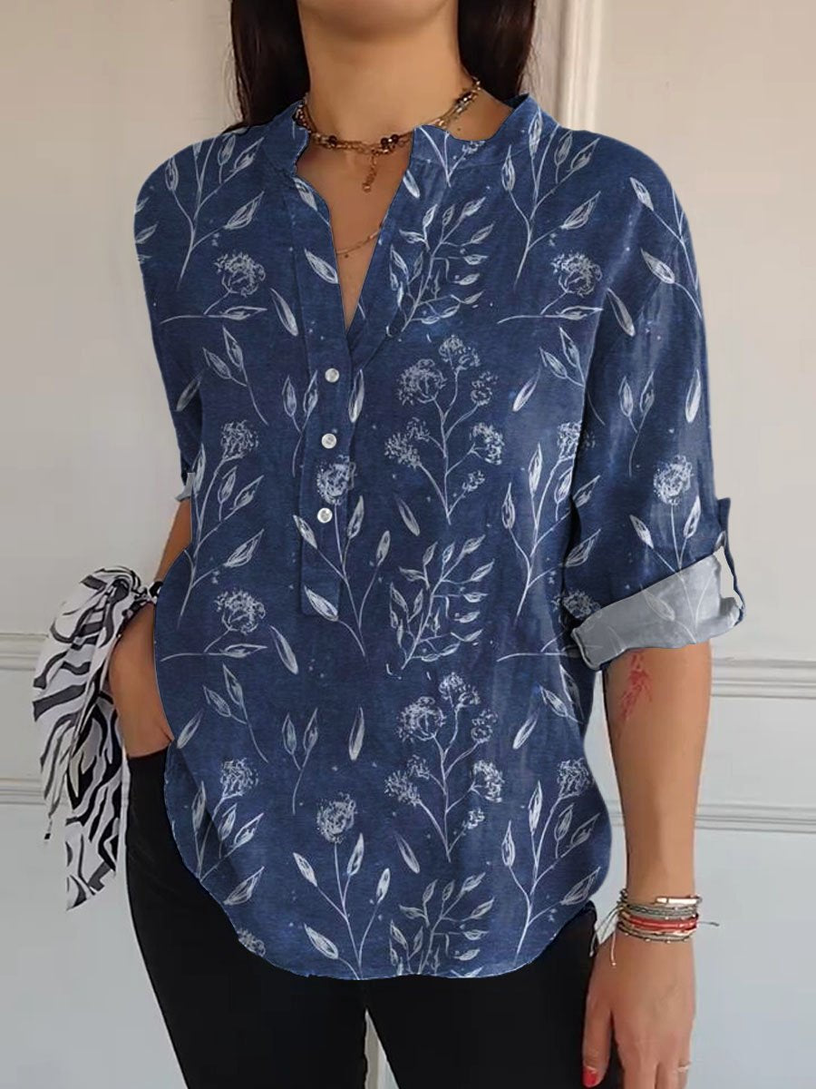 Women's Vintage Lovely Floral Art Print Casual Long Sleeve Comfortable Cotton Shirt