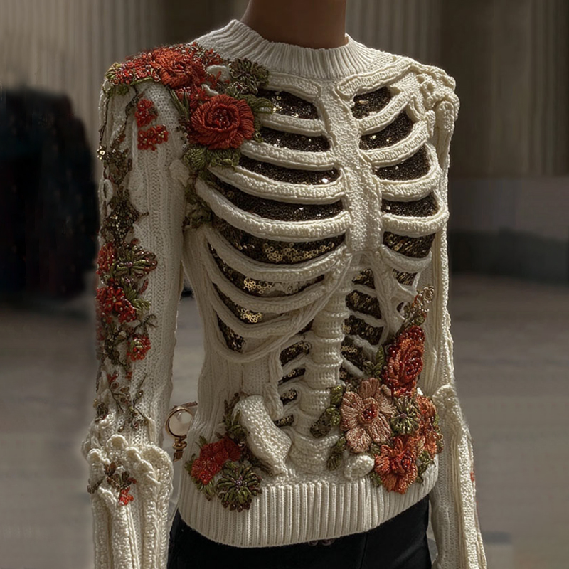 Women's Vintage Skeleton And Rose Art Cozy Sweater