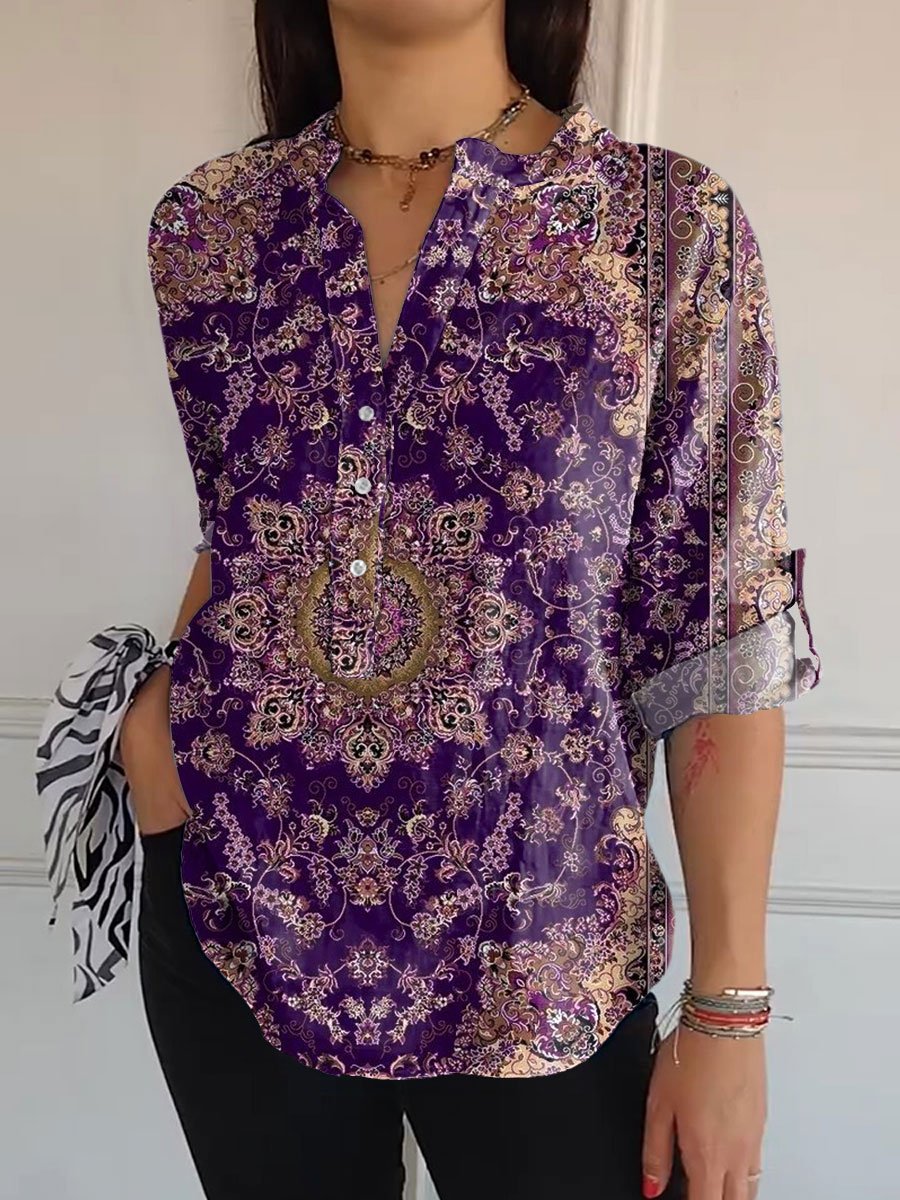 Women's Vintage Symmetry Art Print Casual Long Sleeve Comfortable Cotton Shirt