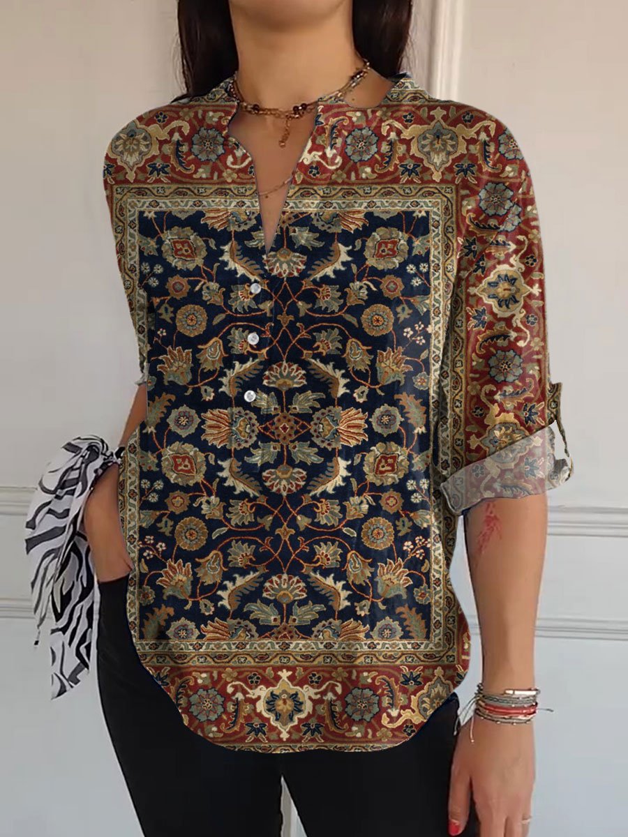 Women's Vintage Symmetry Art Print Casual Long Sleeve Comfortable Cotton Shirt