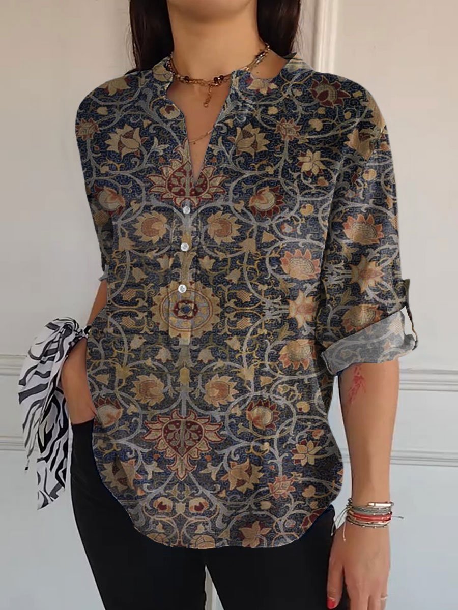 Women's Vintage Symmetry Art Print Casual Long Sleeve Comfortable Cotton Shirt